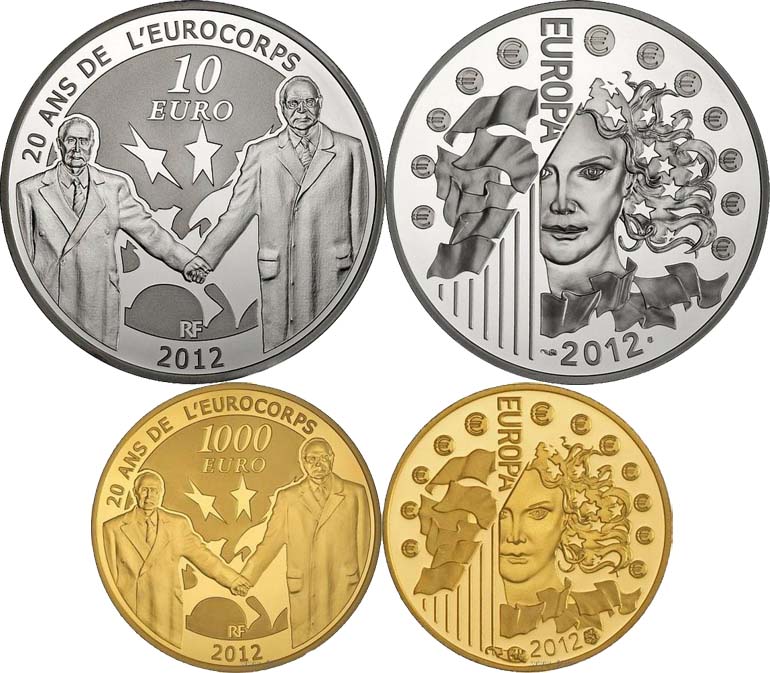 Монетный двор Франции в феврале 2012 года выпустил ряд монеты в честь 20-летней годовщины создания Еврокорпуса.