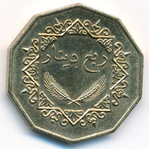KM#26 Ливия, 1/4 динара Никель-Латунь, 28 мм, 11.15 г Категории: Необычная форма. Всадник. Информация о выпуске (подробности в каталоге):
