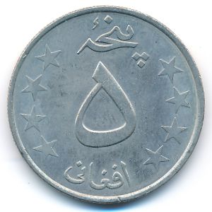 KM#1000 Афганистан, 5 афгани Медь-Никель, 27 мм, 7.4 г Категории: Без тематики. Дата выпуска в обращение 27.12.1981. Информация о выпуске (подробности в каталоге):